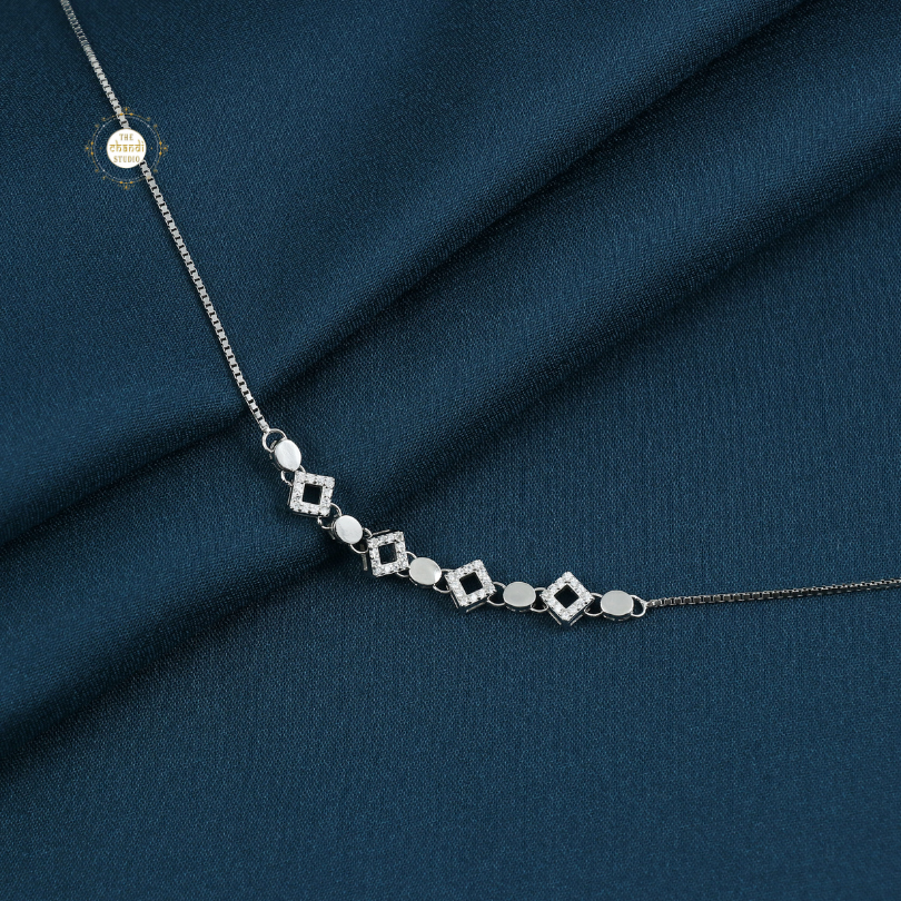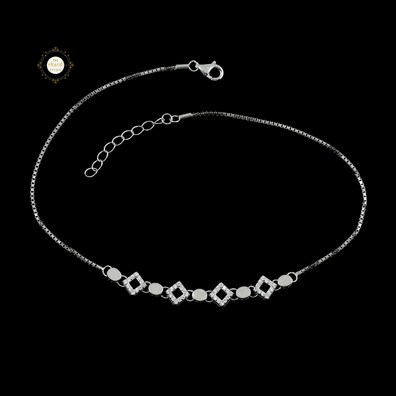 Elevate your style with our Sparkling Silver Anklet. Lightweight and comfortable for everyday wear, it features a rhodium finish for lasting shine and protection. Perfect for both casual and formal occasions, let your ankles dazzle with this exquisite accessory Price mentioned For a piece Nickle free Rhodium Polish for better finish.