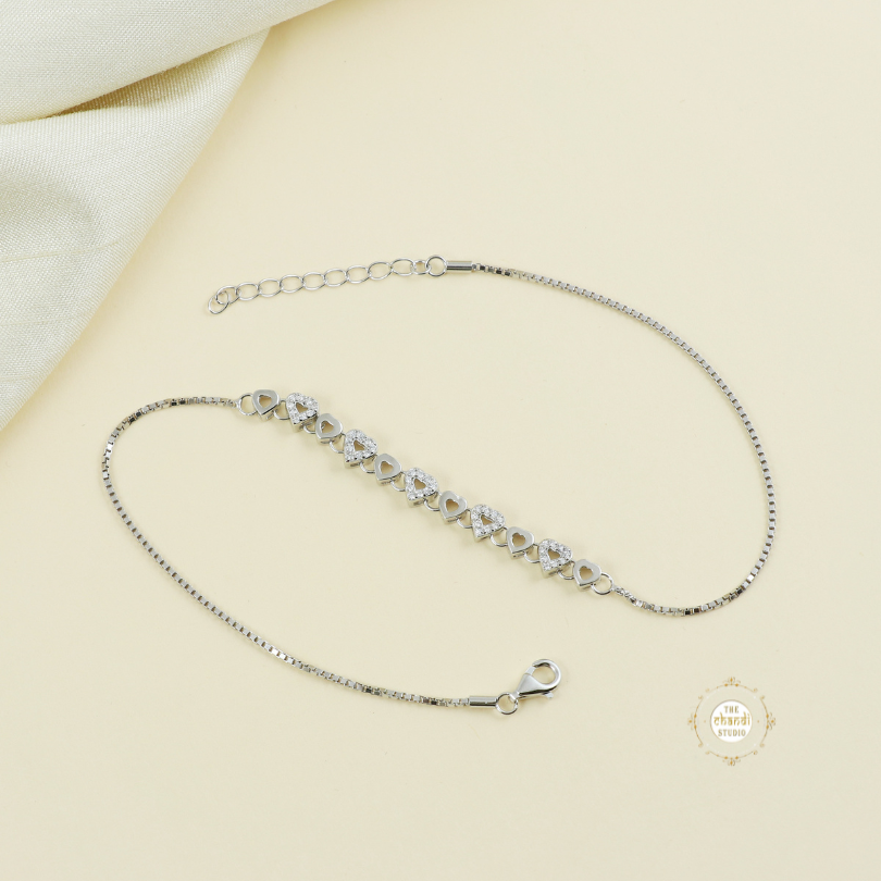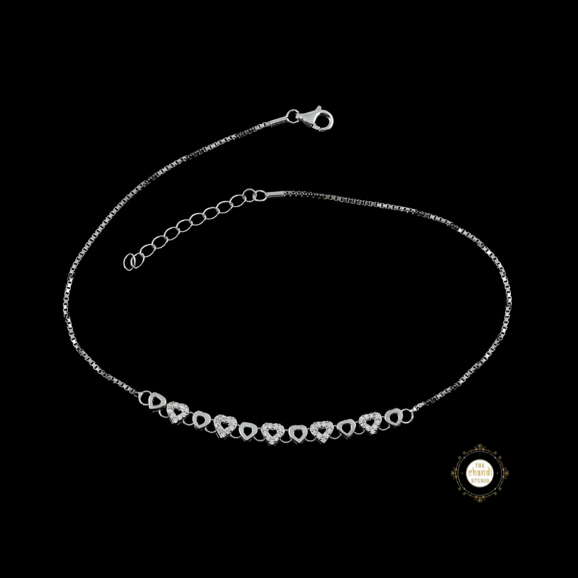 Sparkling Silver Dazzle Heart Anklet (Piece)