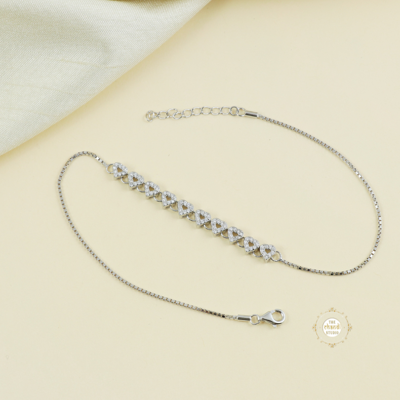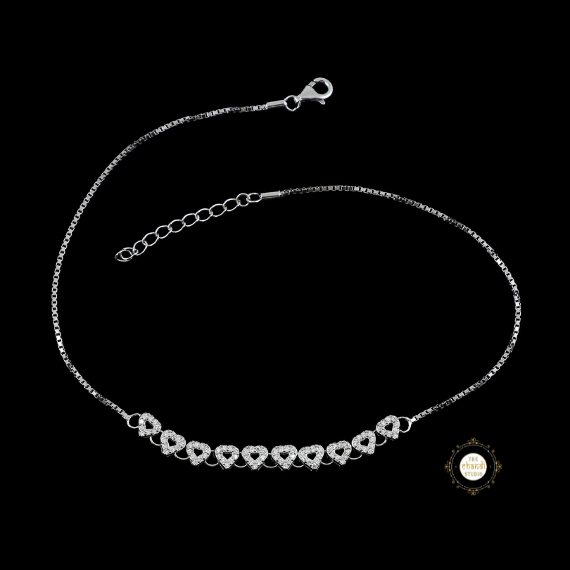 Sparkling Silver Dazzle Heart Anklet (Piece)