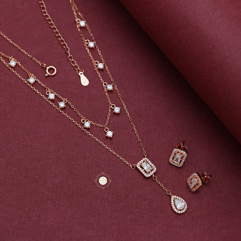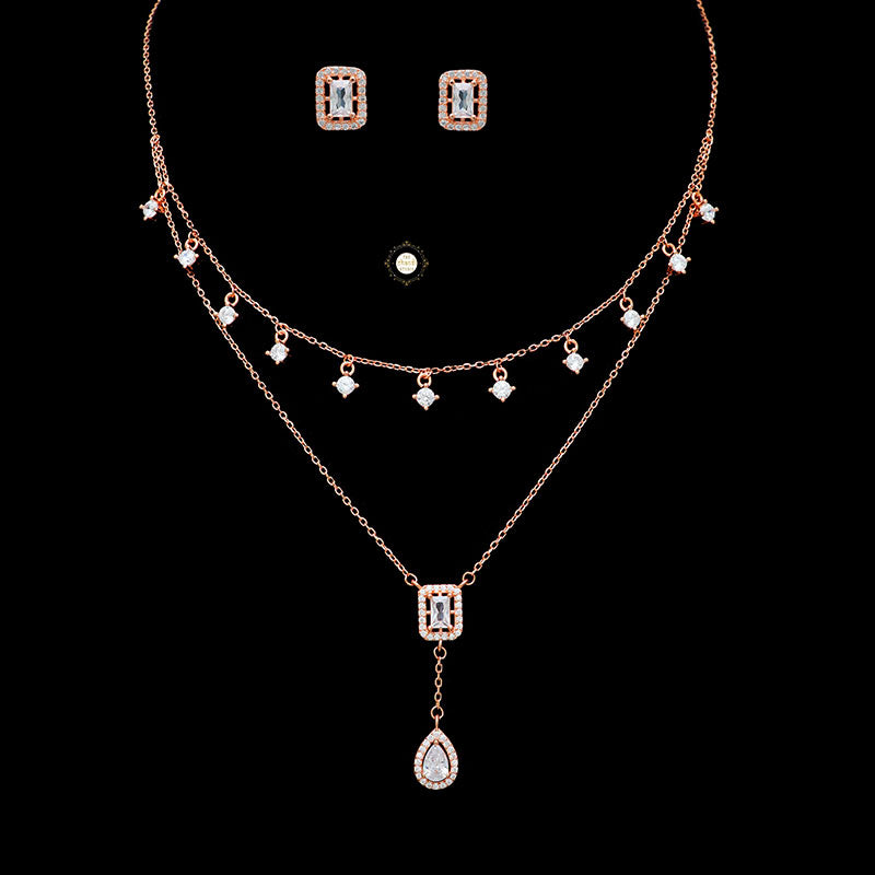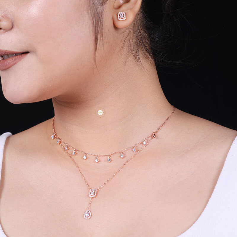 This exquisite necklace features a double-layered design with dazzling droplet-shaped pendants crafted from sparkling silver. * Nickle free Rhodium Polish for better finish