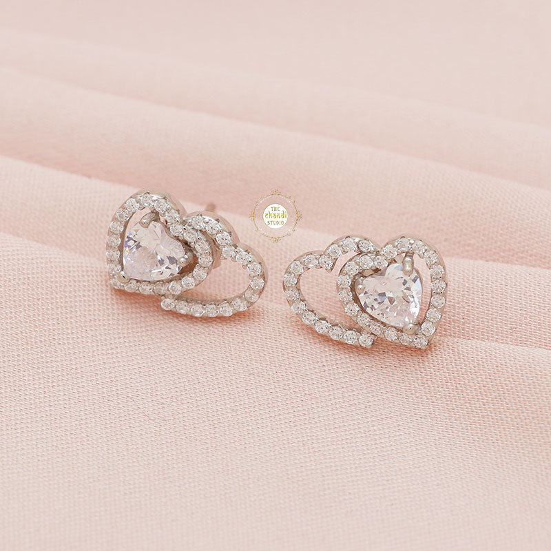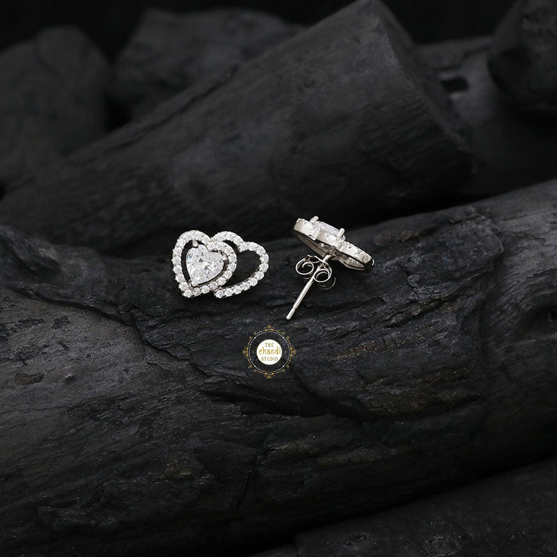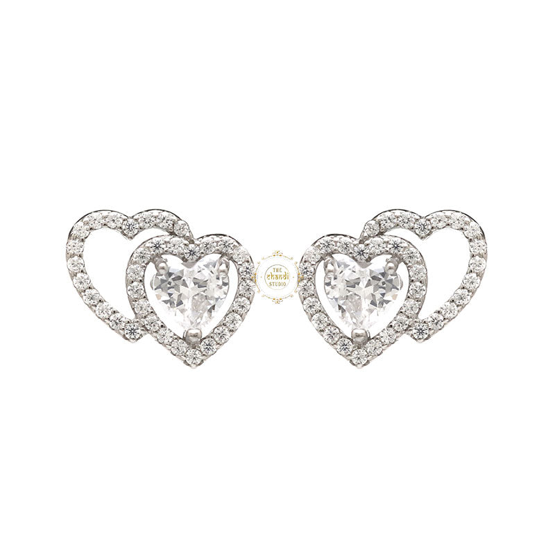 These exquisite studs feature a heart-shaped design adorned with sparkling zircons, creating a dazzling and eye-catching look that will capture hearts everywhere. * Nickle free Rhodium Polish for better finish