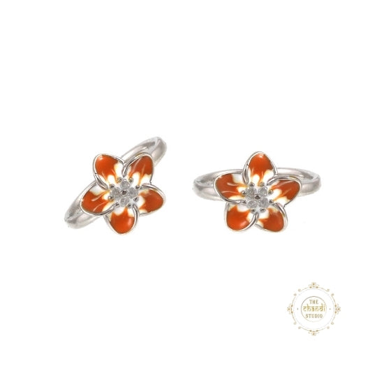 Add a touch of elegance with our Sparkling Silver Enamel Floral Toe Ring. Crafted from durable sterling silver, this adjustable ring features vibrant enamel flowers, perfect for summer style and effortless charm.