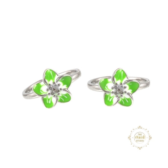 Add a touch of elegance with our Sparkling Silver Enamel Floral Toe Ring. Crafted from durable sterling silver, this adjustable ring features vibrant enamel flowers, perfect for summer style and effortless charm.