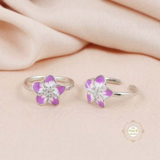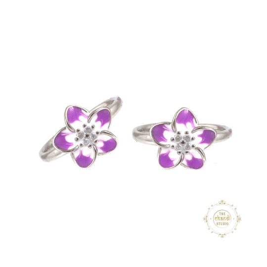 Add a touch of elegance with our Sparkling Silver Enamel Floral Toe Ring. Crafted from durable sterling silver, this adjustable ring features vibrant enamel flowers, perfect for summer style and effortless charm.