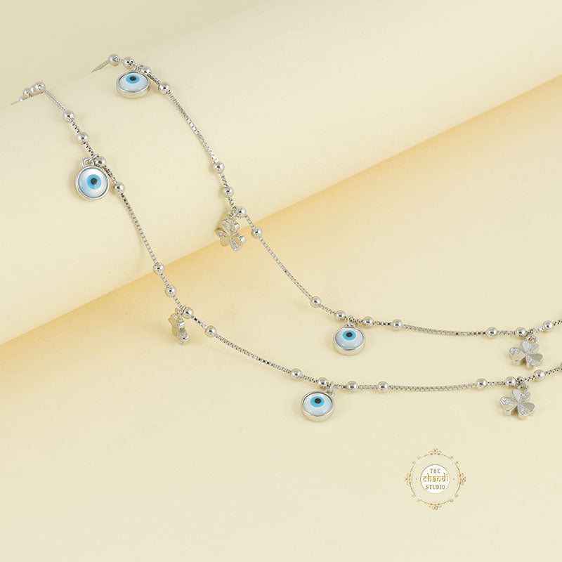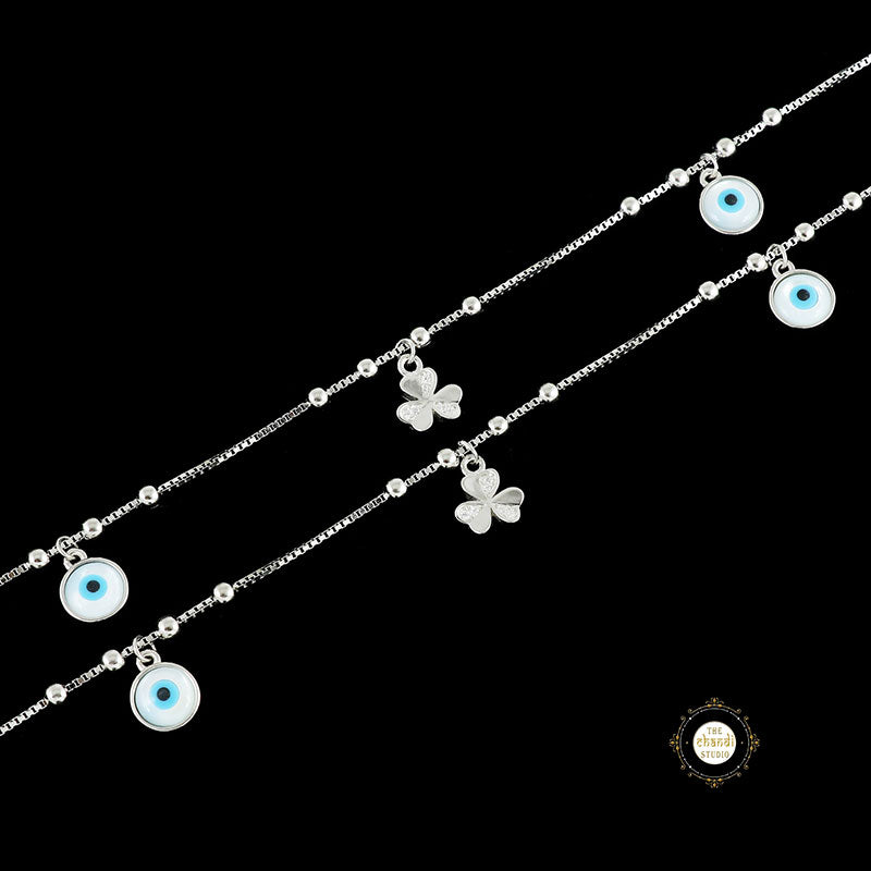 Shield your style with the Sparkling Silver Evil Eye Anklet  Crafted in pure silver, this elegant charm anklet offers protection and chic vibes. A must-have for everyday elegance!