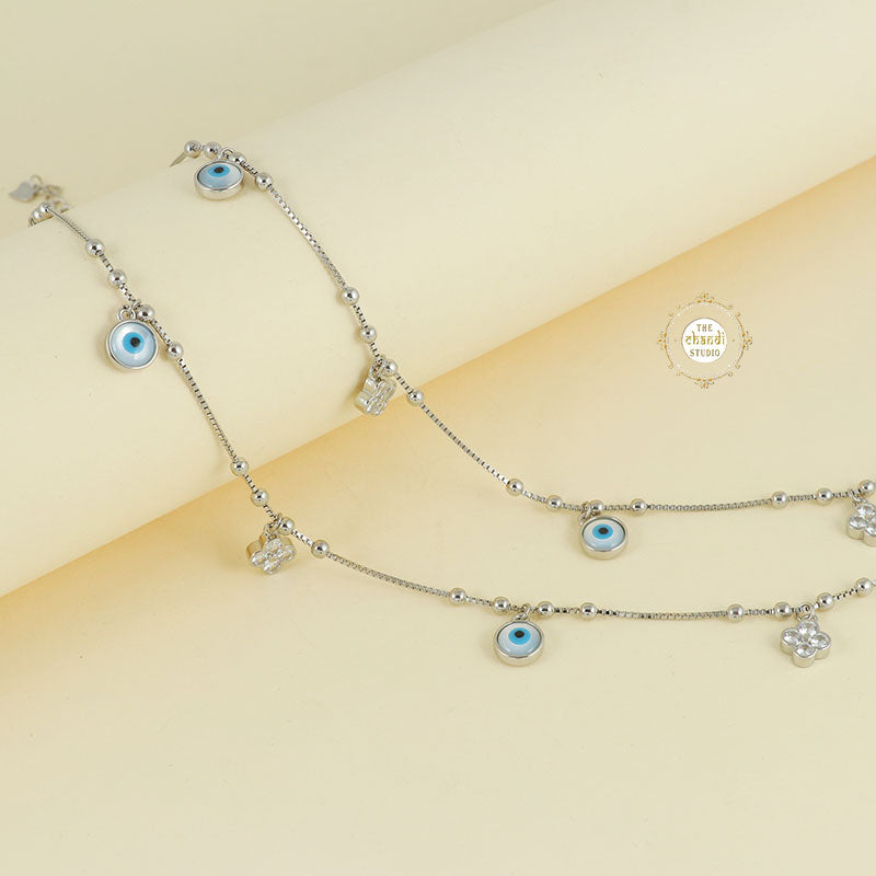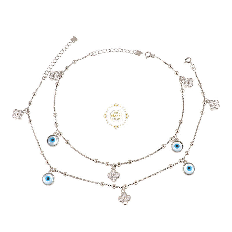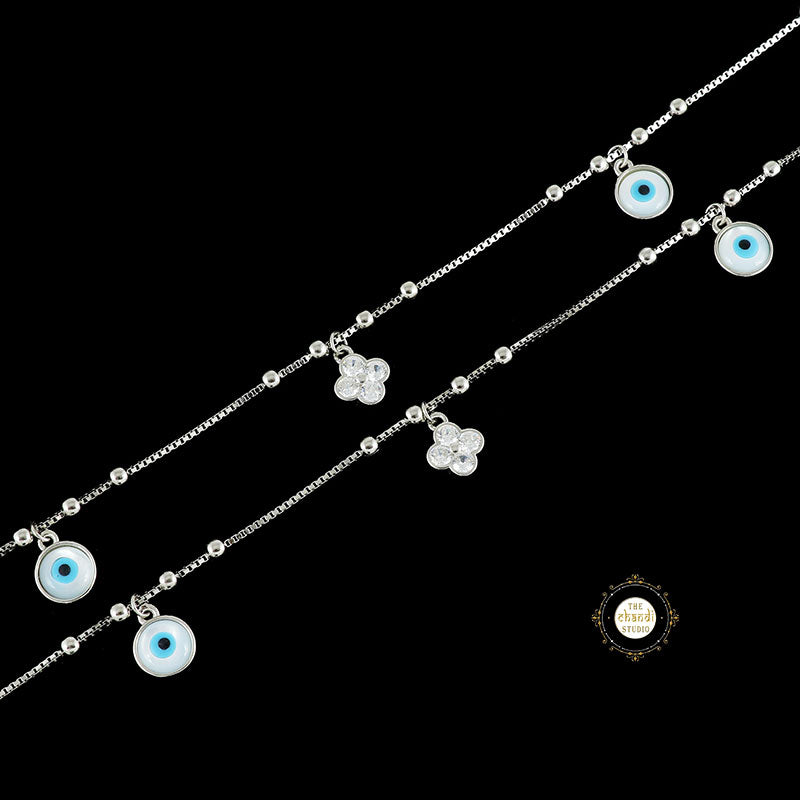 Shield your style with the Sparkling Silver Evil Eye Anklet  Crafted in pure silver, this elegant charm anklet offers protection and chic vibes. A must-have for everyday elegance!