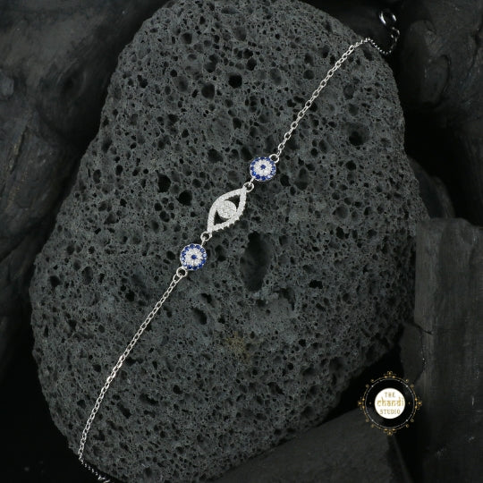 Discover protection and style with our Sparkling Silver Evil Eye Bracelet. Crafted from premium sterling silver, this elegant piece features a dazzling evil eye charm, perfect for warding off negativity while enhancing your look