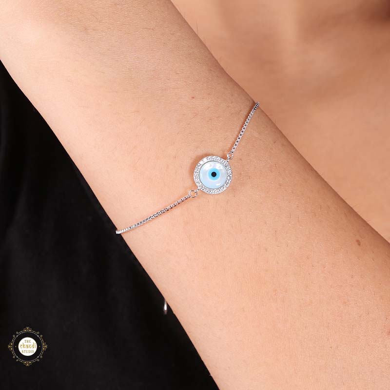Sterling Silver Sparkling Evil Eye Bracelet