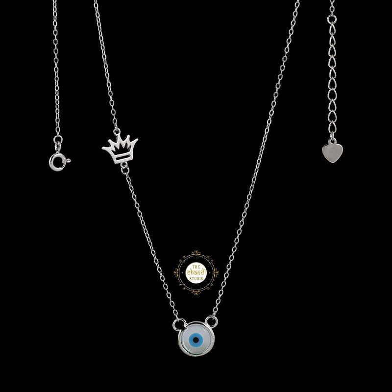 Ward off negativity in style with the Sparkling Silver Evil Eye Necklace. Crafted in sterling silver with a shimmering evil eye charm, it offers protection and elegance, perfect for everyday wear.