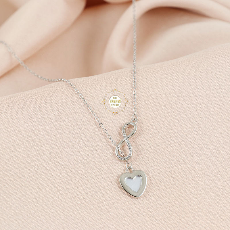 Ward off negativity in style with the Sparkling Silver Infinity Heart Necklace Crafted in sterling silver with a shimmering evil eye charm, it offers protection and elegance, perfect for everyday wear.