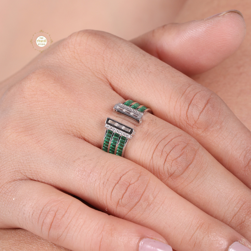 This sterling silver ring is adorned with brilliantly cut sparkling Zircon stones. Manifested on a white toned band, this ring is perfect to solidify a union in love for young adults or women who have just started to work on self-love. SIZE : ADJUSTABLE Nickle free Rhodium Polish for better finish.