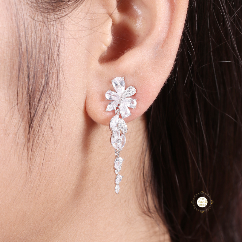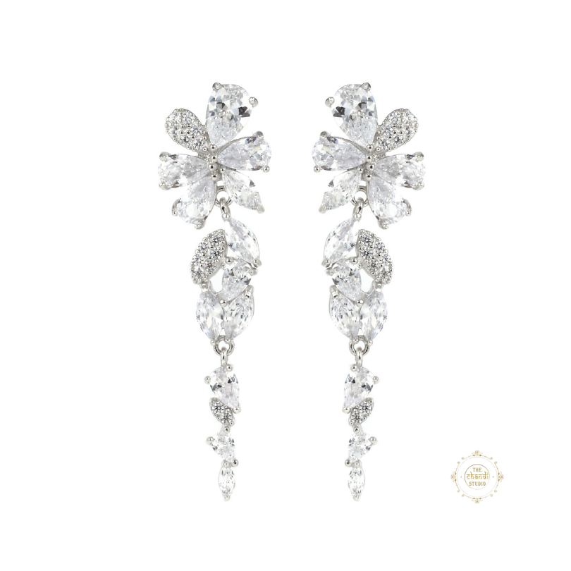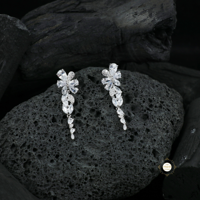 Elevate your elegance with our Sparkling Silver Earrings. Crafted from premium silver and adorned with dazzling zircon stones, these earrings offer a radiant shine perfect for any occasion. Nickle free Rhodium Polish for better finish.