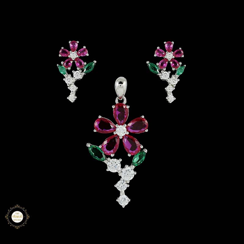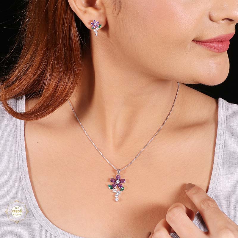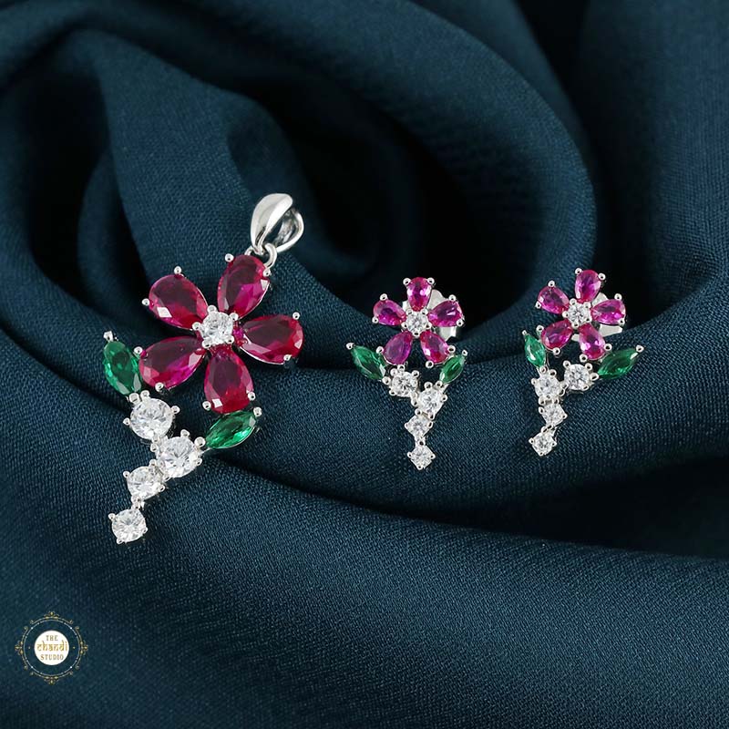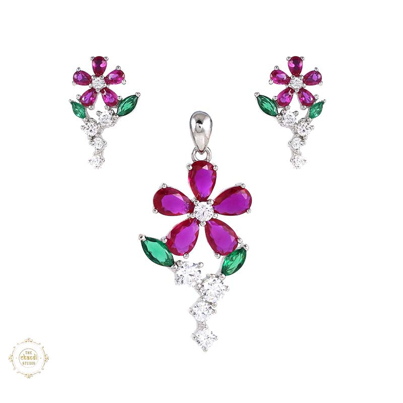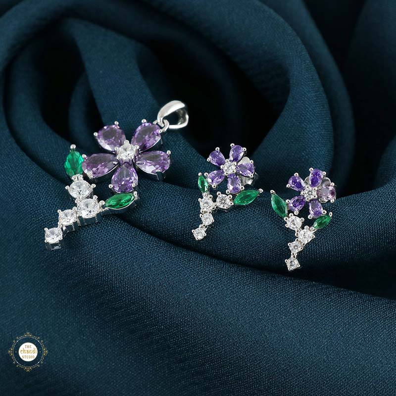 Sterling Silver Sparkling Silver Floral Elegance Set