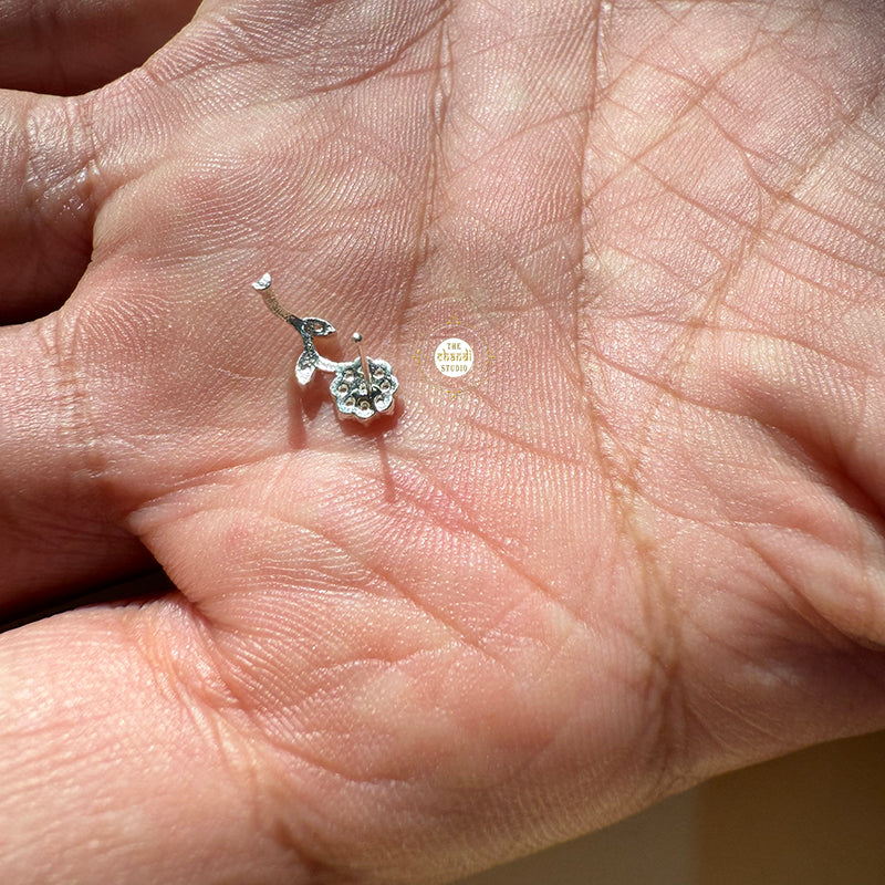 Introducing the Sterling Silver Flower Nose Pin - the ultimate fusion of style and simplicity for the contemporary fashionista. Crafted with precision and elegance, our nose pin embodies the essence of minimalism, adding a touch of sophistication to any ensemble.