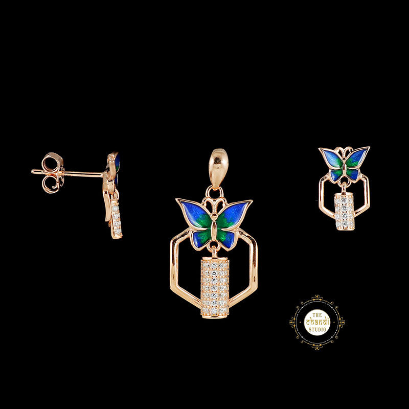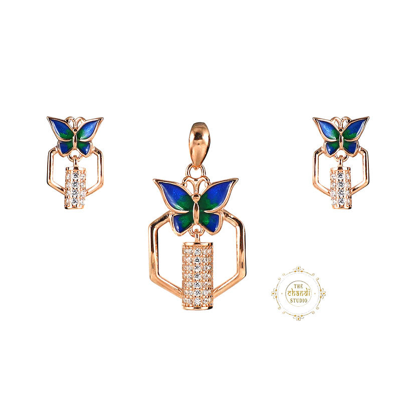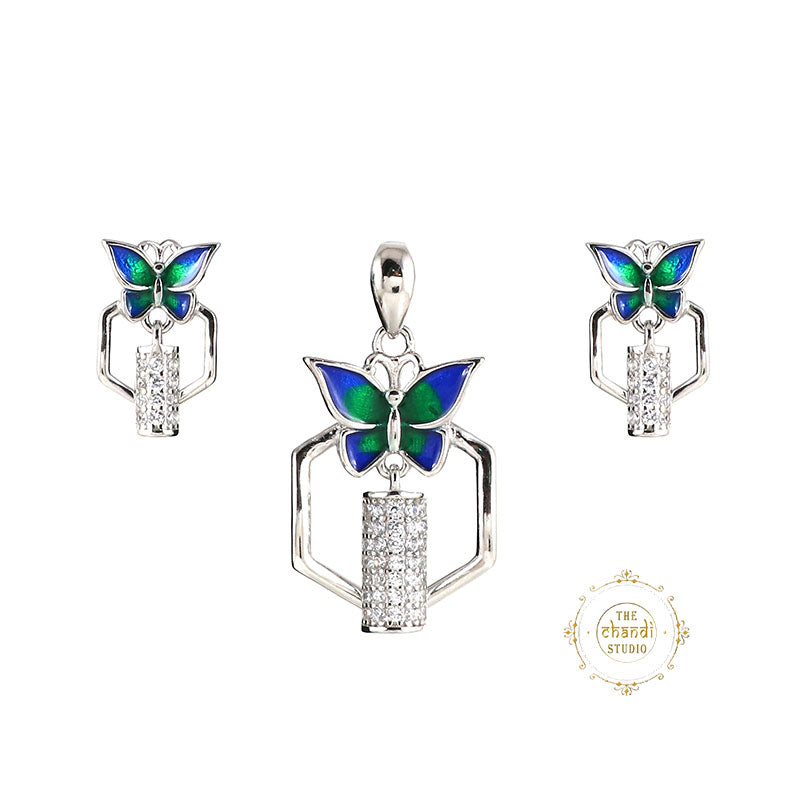 Elevate your elegance with the Sparkling Silver Butterfly Embrace Pendent Set