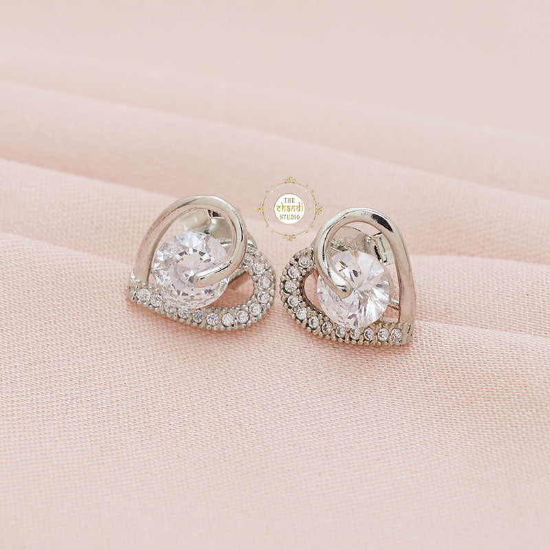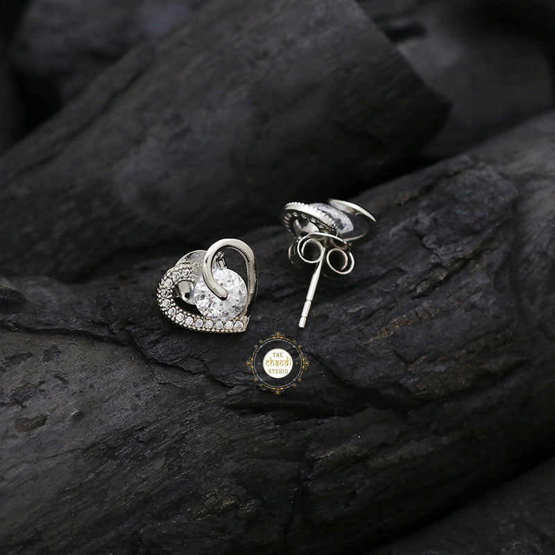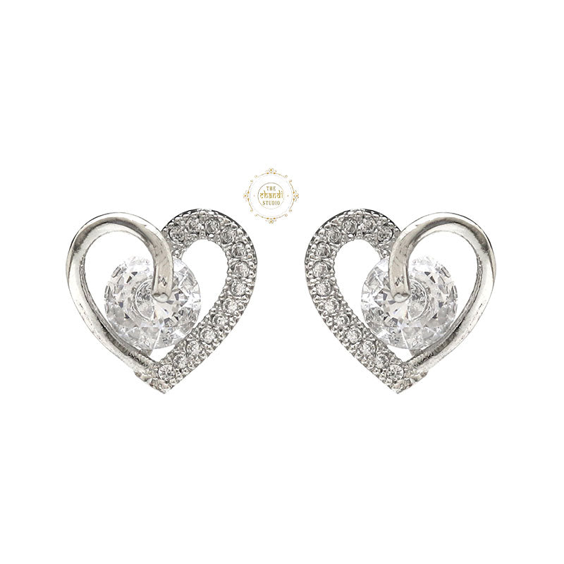 These exquisite studs feature a heart-shaped design adorned with sparkling zircons, creating a dazzling and eye-catching look that will capture hearts everywhere. * Nickle free Rhodium Polish for better finish