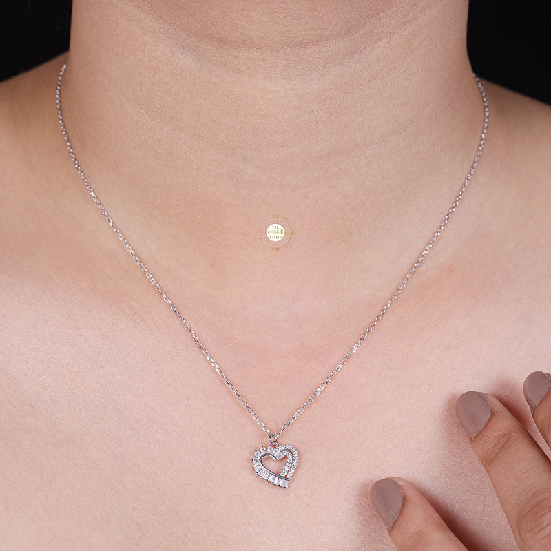 Introducing our heartfelt Sparkling Silver Heartfelt Necklace, a symbol of love and affection that captures the essence of your emotions. This exquisite necklace features a delicate design adorned with shimmering zircon stones arranged in the shape of a heart, creating a meaningful and elegant piece that speaks volumes about your feelings. * Nickle free Rhodium Polish for better finish