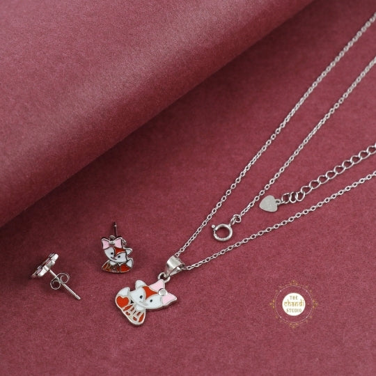 This delightful set features an enchanting Fox pendant embellished with sparkling accents that add a touch of whimsy to your look.