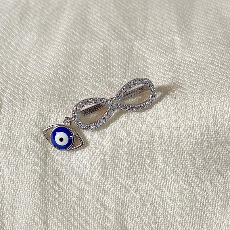 Sterling Silver Sparkling Silver Infinity with Evil Eye Watch Charm