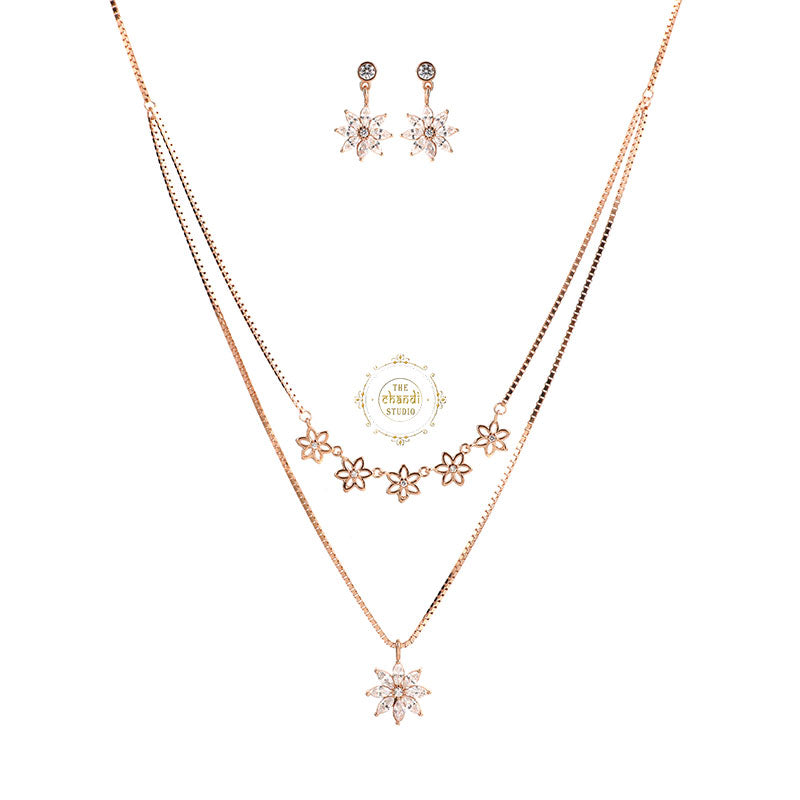 Sparkling Silver Starlit Double Layered Necklace with Earring