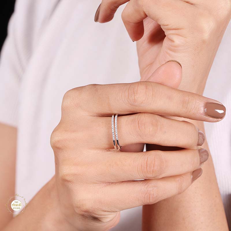 Sterling Silver Sparkling  layer up stack Ring