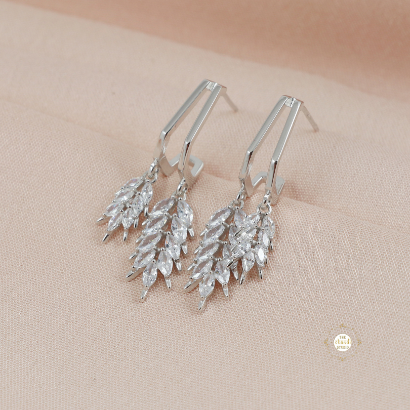 Elevate your elegance with our Sparkling Silver Earrings. Crafted from premium silver and adorned with dazzling zircon stones, these earrings offer a radiant shine perfect for any occasion. Nickle free Rhodium Polish for better finish.