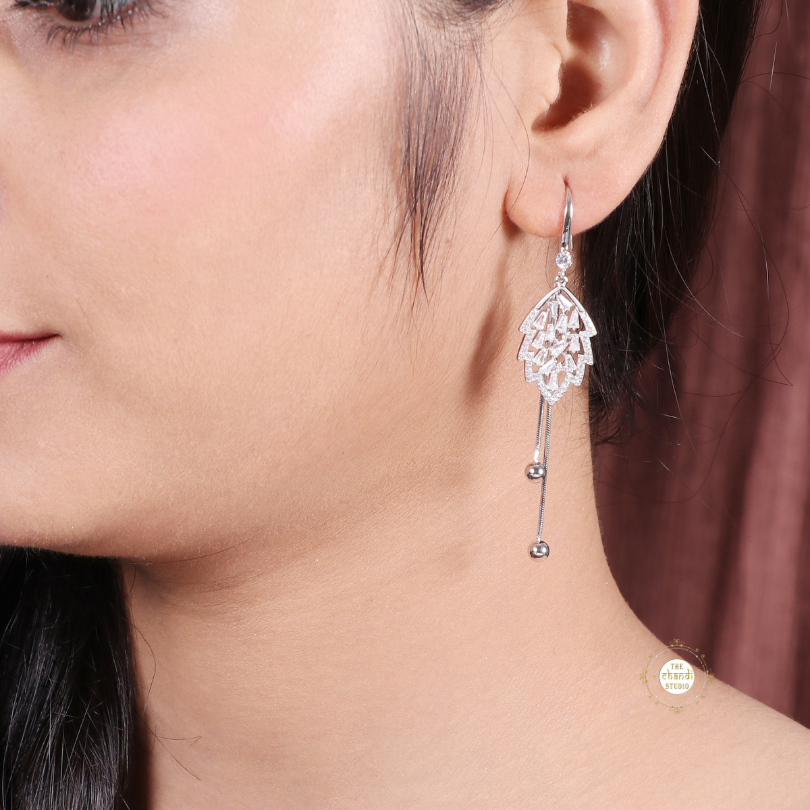 Elevate your elegance with our Sparkling Silver Earrings. Crafted from premium silver and adorned with dazzling zircon stones, these earrings offer a radiant shine perfect for any occasion. Nickle free Rhodium Polish for better finish.