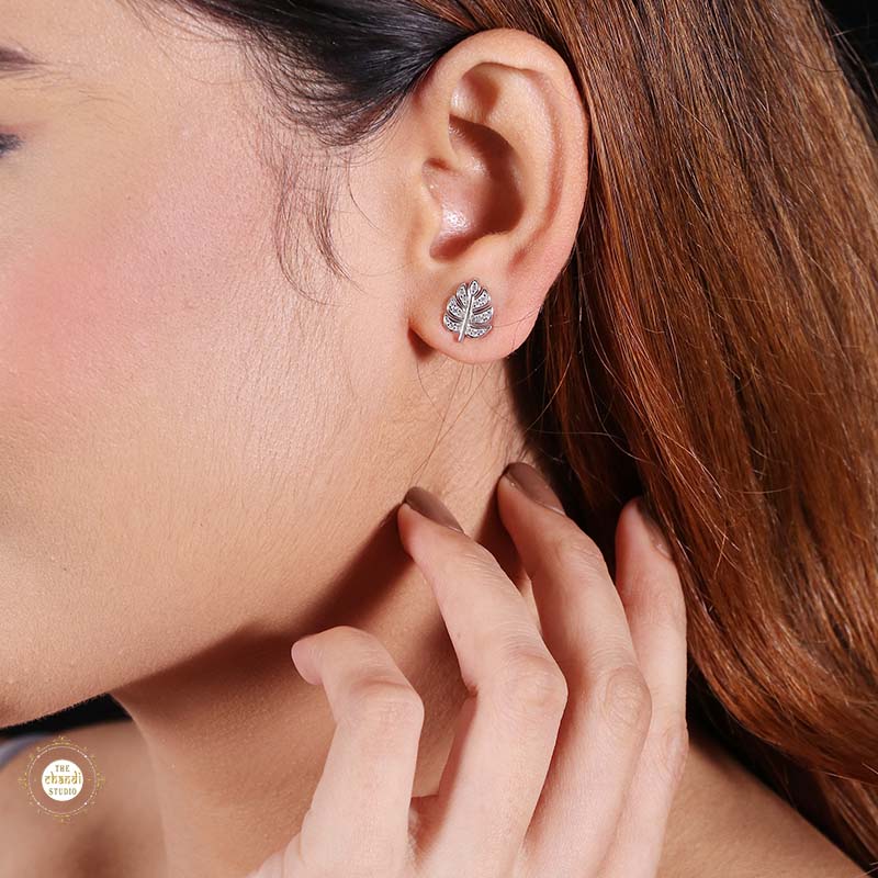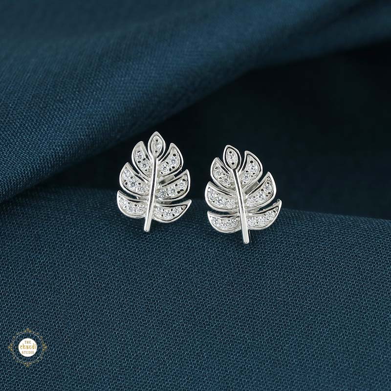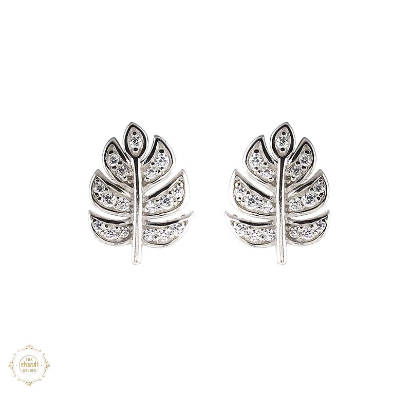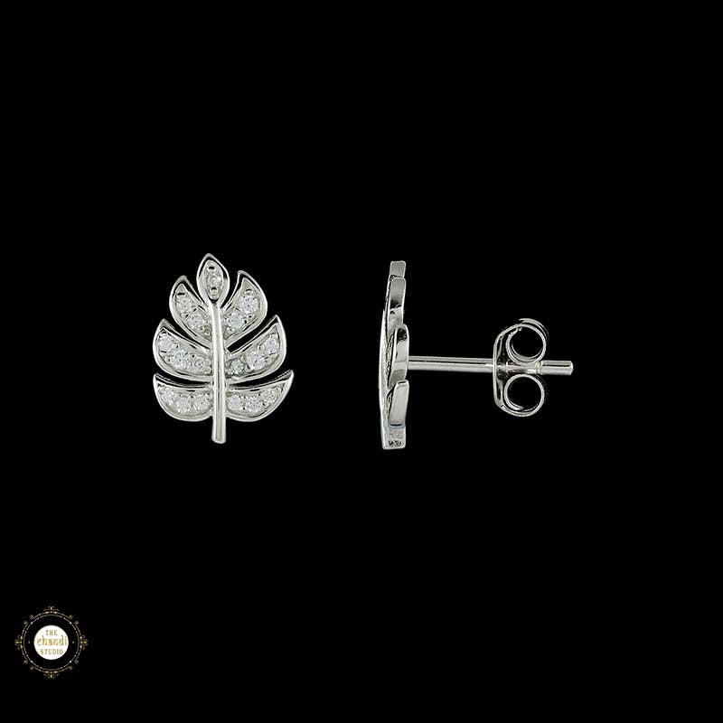 Sterling Silver Sparkling  Leaf Earring
