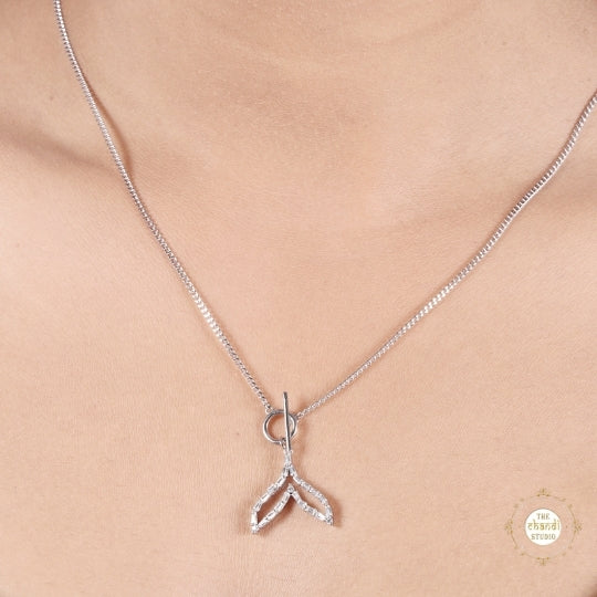 Crafted from sterling silver, this necklace features a delicate leaf-inspired pendant embellished with sparkling accents, giving it a radiant shine.