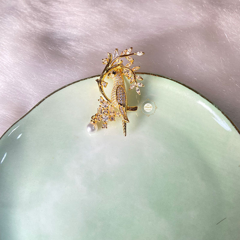 Enhance your look with the Sparkling Silver Majestic Parrot Brooch, showcasing intricate detailing and timeless elegance. This unique accessory adds a regal charm to your attire, perfect for any occasion.