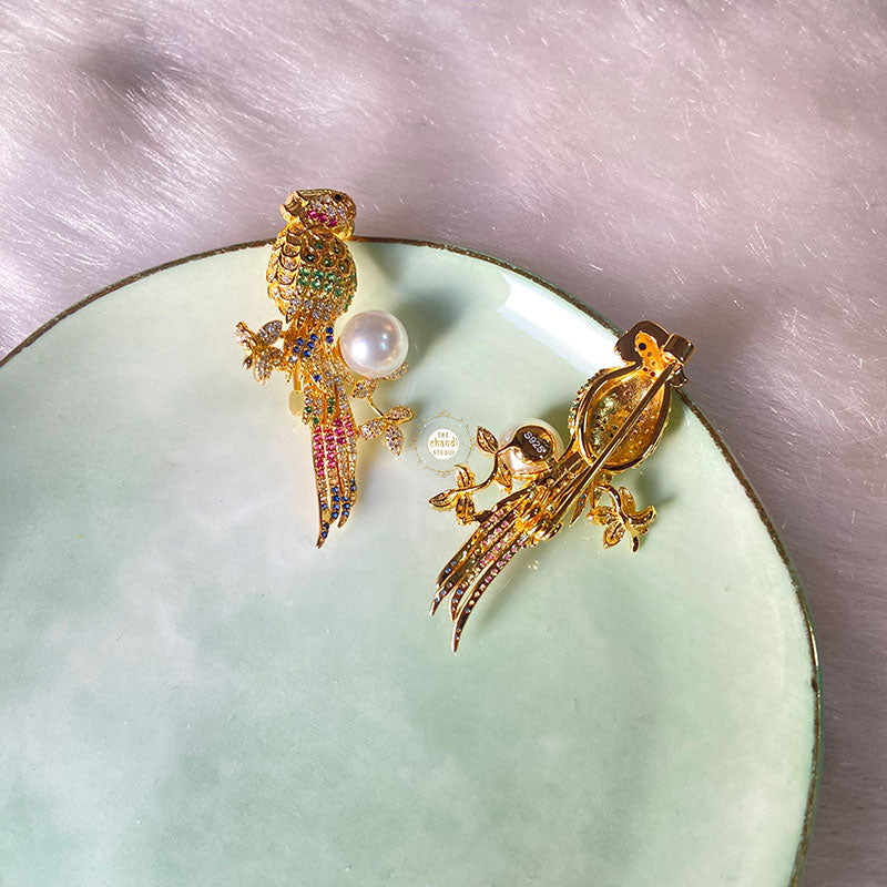Add charm to your ensemble with the Sparkling Silver Mini Pearl Parrot Gold Brooch. Adorned with delicate pearls and gold accents, this stunning piece exudes elegance and sophistication for any occasion.