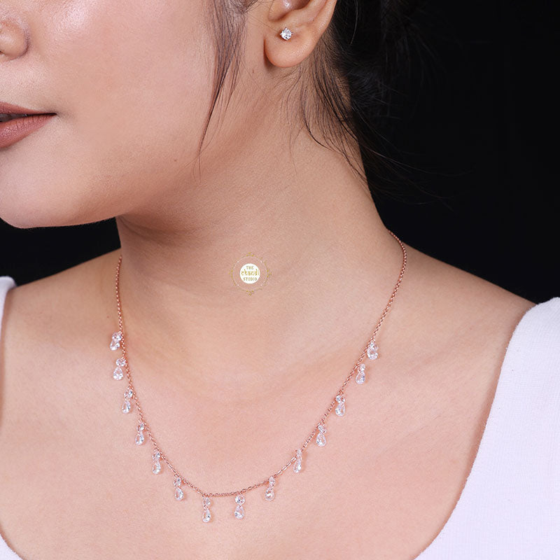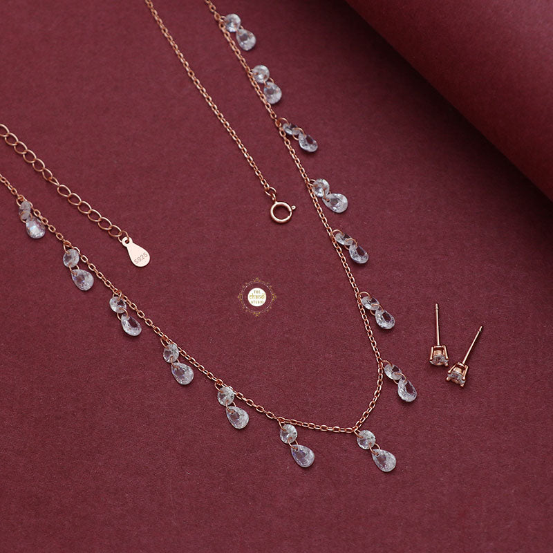 ntroducing our ethereal Sparkling Silver Misty Morning Necklace with Earrings, a serene set that captures the beauty of a misty morning. This exquisite ensemble features a delicate necklace and matching earrings adorned with shimmering zircon stones that evoke the peaceful ambiance of dawn. * Nickle free Rhodium Polish for better finish