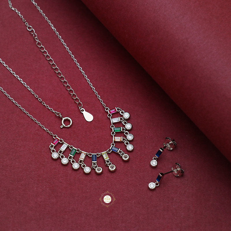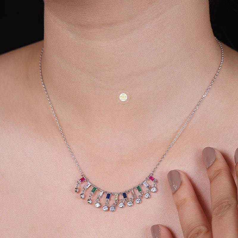 This exquisite necklace features multiple sparkling stones set in sterling silver, creating a stunning and eye-catching design. * Nickle free Rhodium Polish for better finish