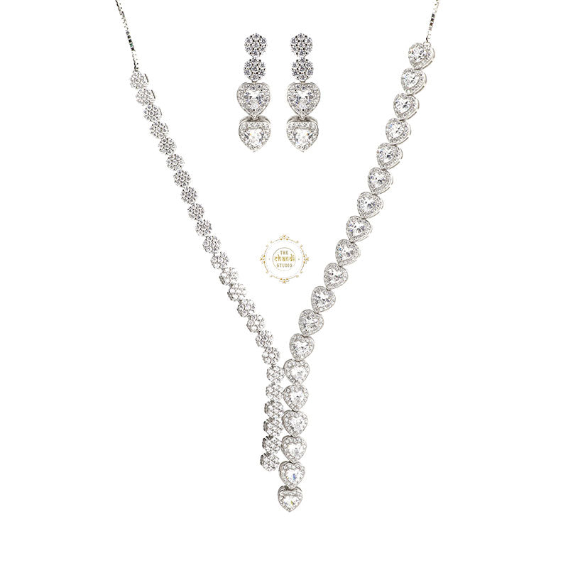 Ward off negativity in style with the Sparkling Silver Forever Yours Necklace with Earring Crafted in sterling silver with a shimmering evil eye charm, it offers protection and elegance, perfect for everyday wear.