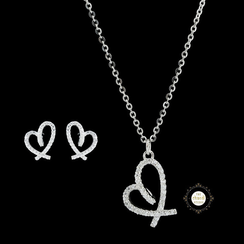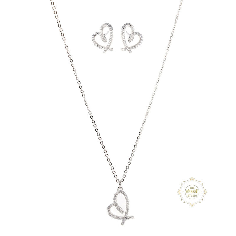 Ward off negativity in style with the Sparkling Silver Sweetheart Necklace with Earring Crafted in sterling silver with a shimmering evil eye charm, it offers protection and elegance, perfect for everyday wear.