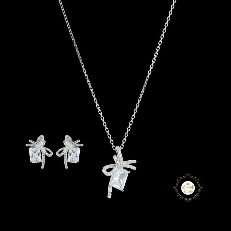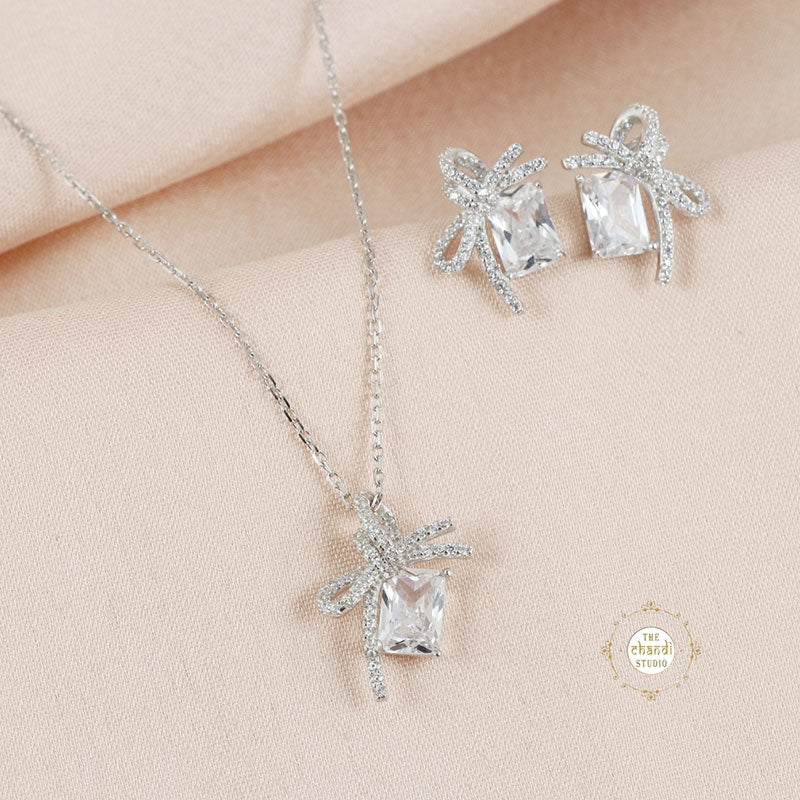 Sparkling SIlver Knot of Promise Necklace with Earring