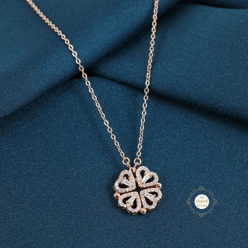 Sparkling Silver Lucky Hearts Magnet Necklace