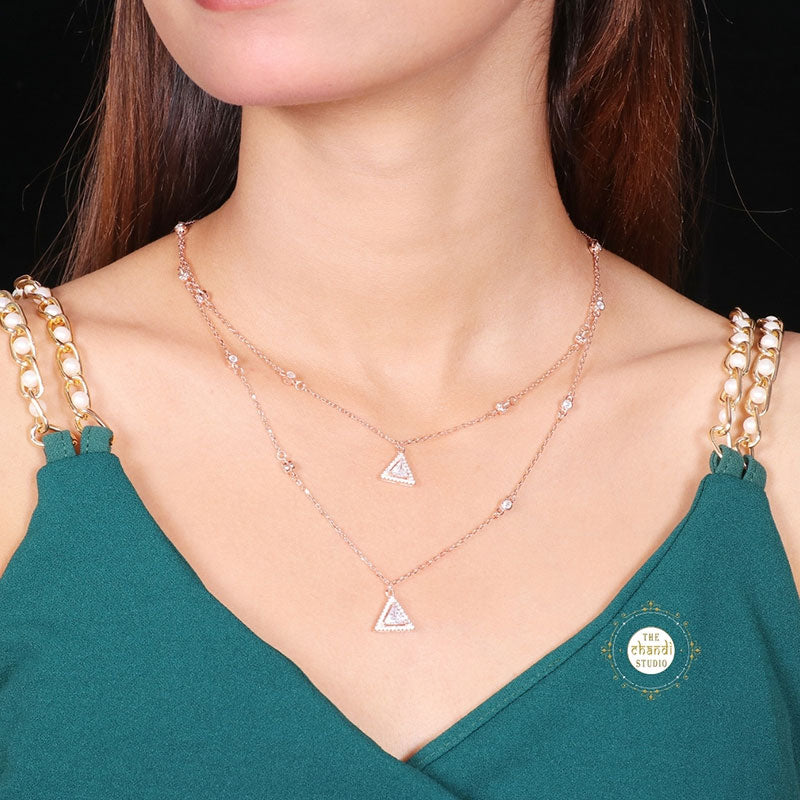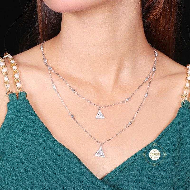 Sparkling Silver Twilight Triangle Spark Necklace