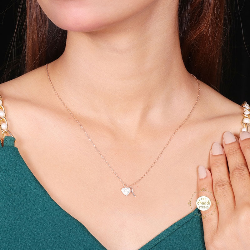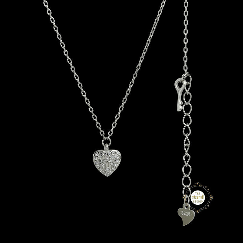 Ward off negativity in style with the  Sparkling Silver  Heart  Key Necklace Crafted in sterling silver with a shimmering evil eye charm, it offers protection and elegance, perfect for everyday wear.