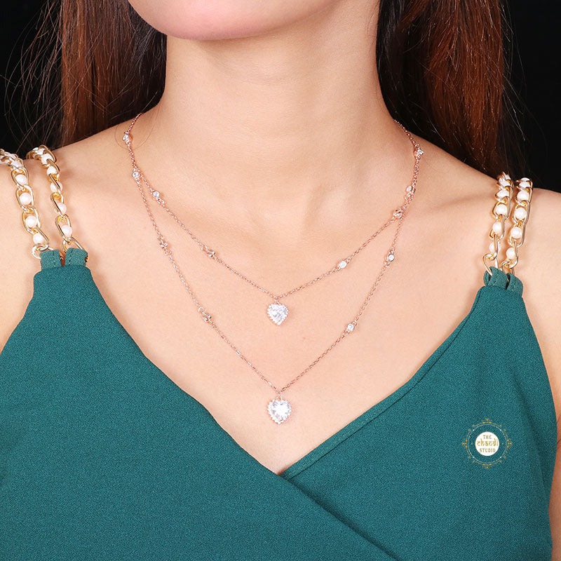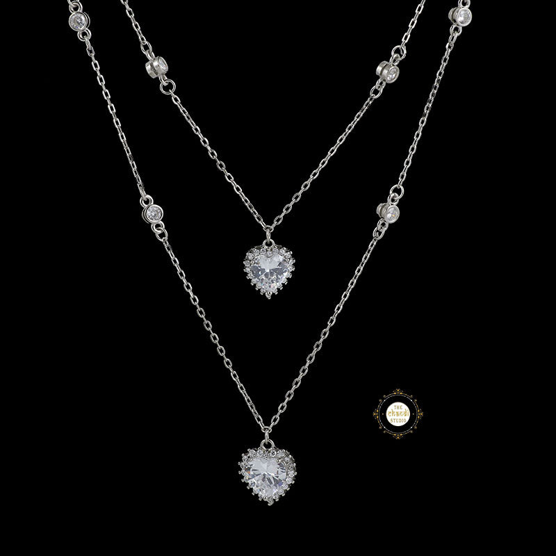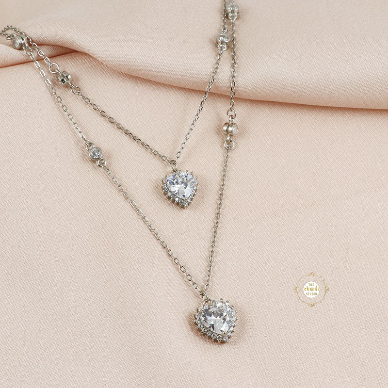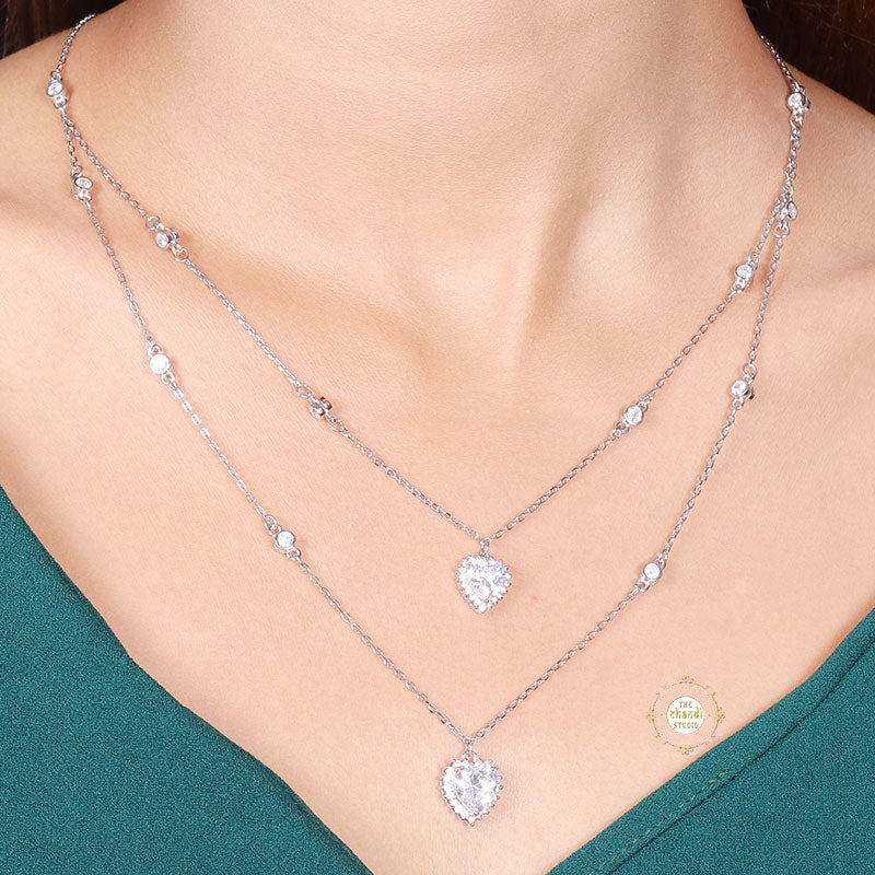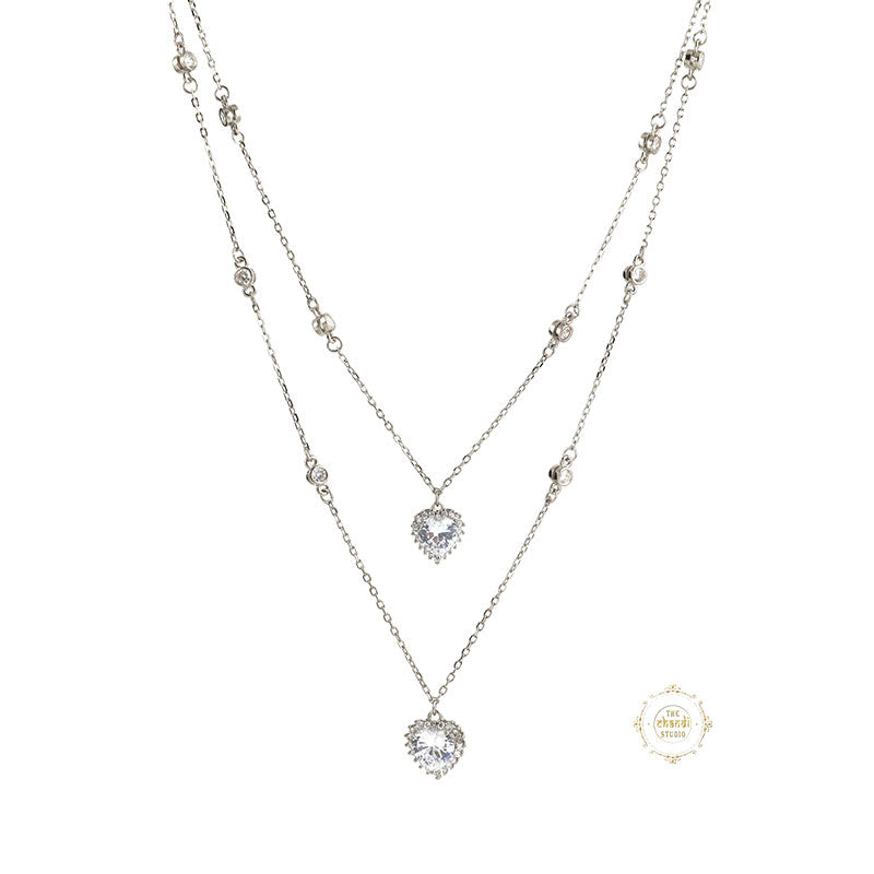 Ward off negativity in style with the  Sparkling Silver Double Line Heart  Necklace Crafted in sterling silver with a shimmering evil eye charm, it offers protection and elegance, perfect for everyday wear.