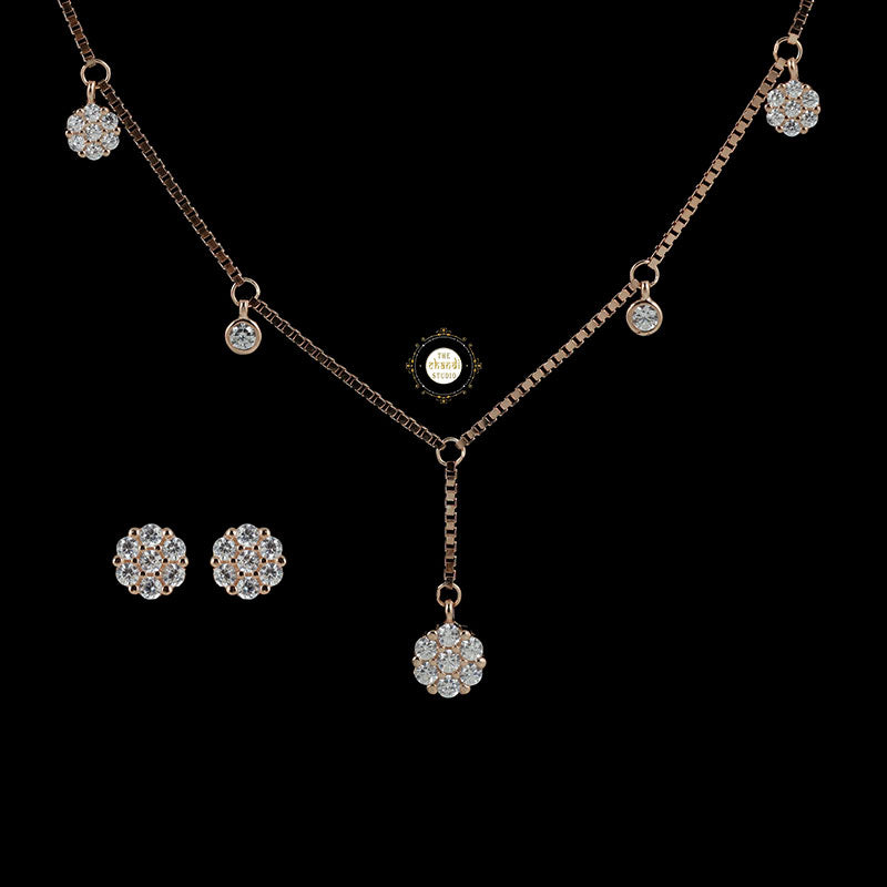 Ward off negativity in style with the Sparkling Silver Crystal Bloom Y-Necklace with earring Crafted in sterling silver with a shimmering evil eye charm, it offers protection and elegance, perfect for everyday wear.
