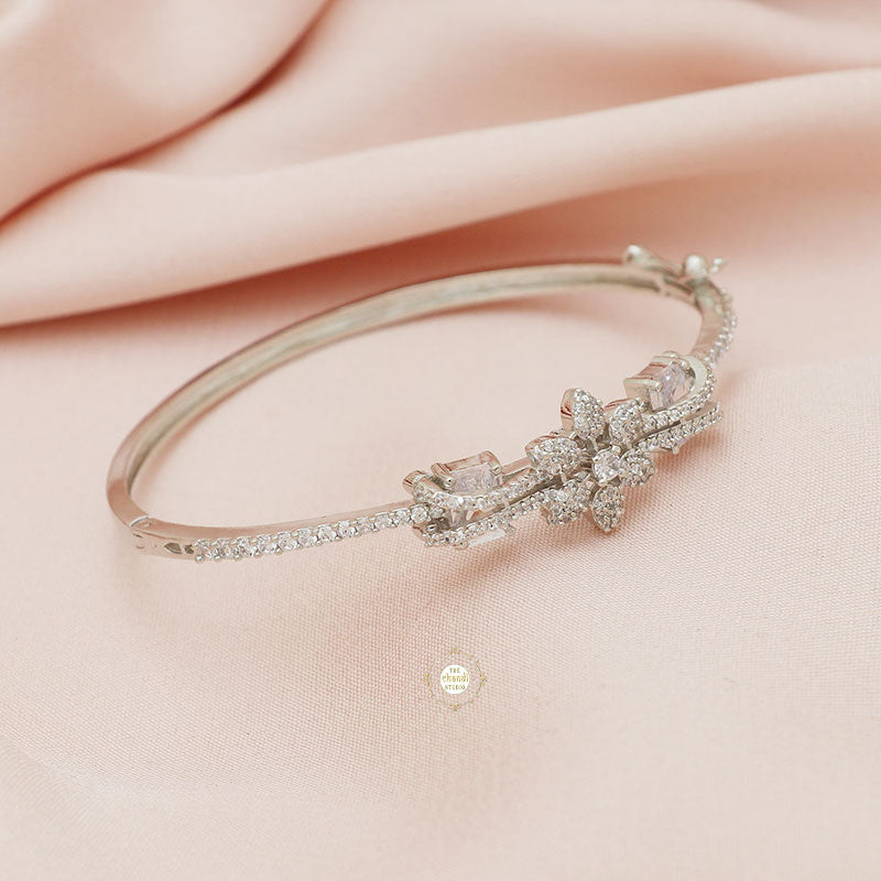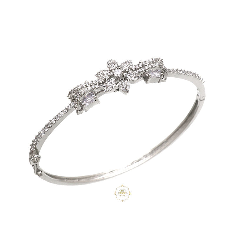 Step into elegance with our Sparkling Silver Openable Flaky Cuff, a stunning addition to our blingy silver jewellery collection. Adorned with dazzling zircon and intricate flaky detailing, this cuff radiates glamour and sophistication. The openable design adds versatility, perfect for styling with any outfit for a glamorous touch. * SIZE ADJUSTABLE * Nickle free Rhodium Polish for better finish