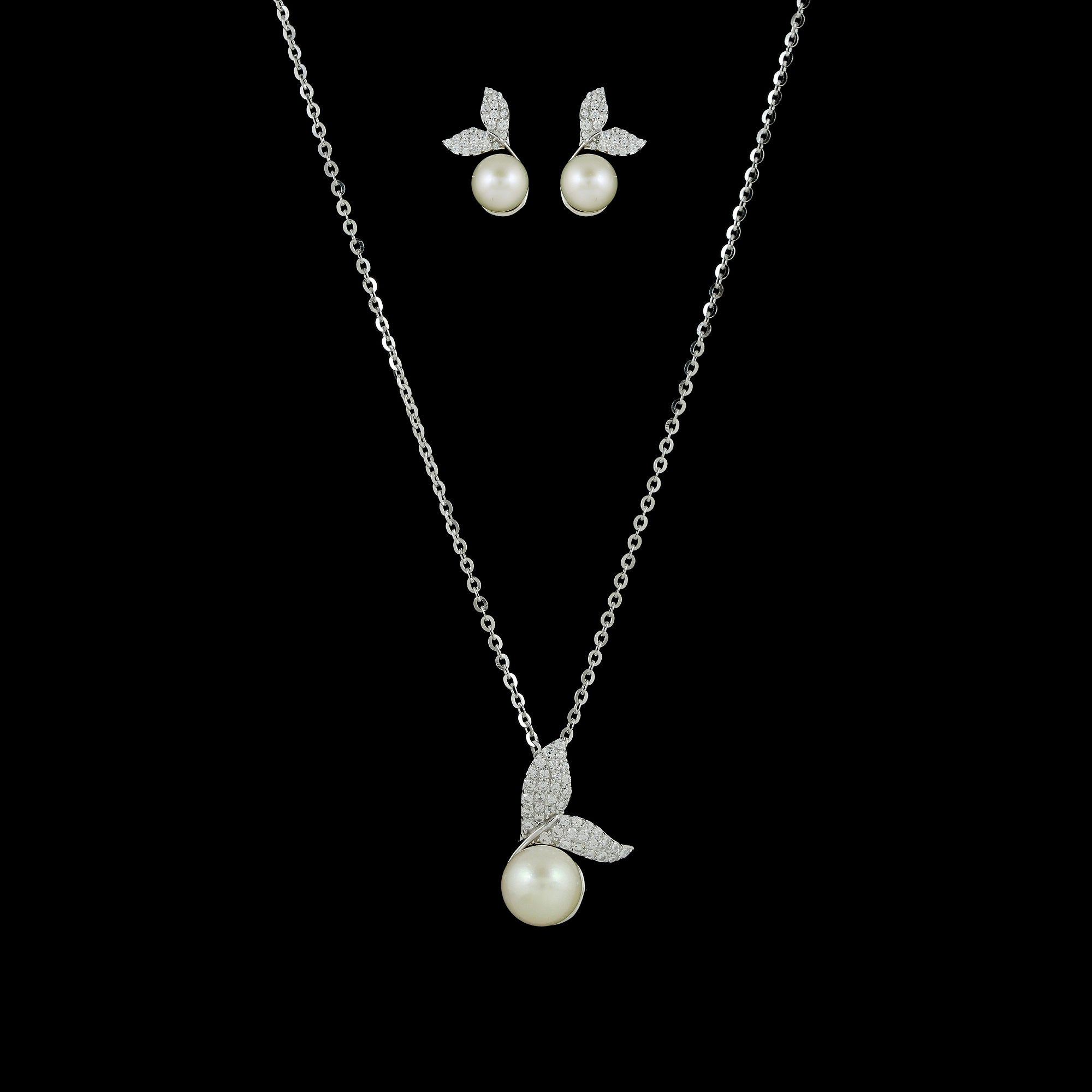 Sterling Silver Sparkling Silver Pearl Whisper Necklace Set