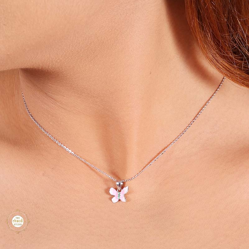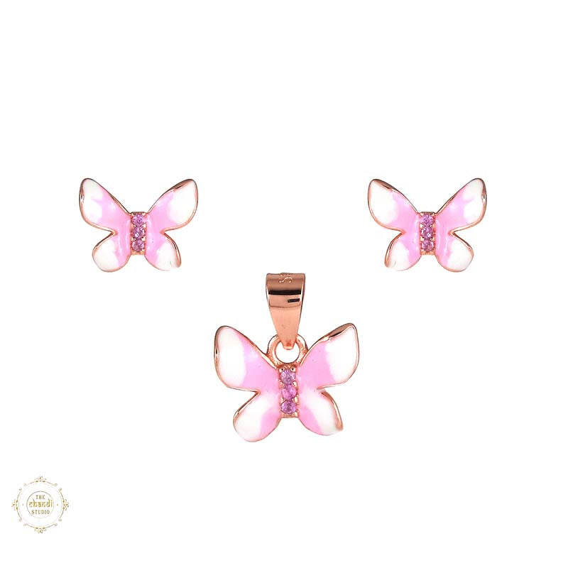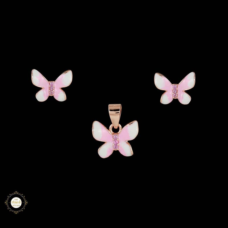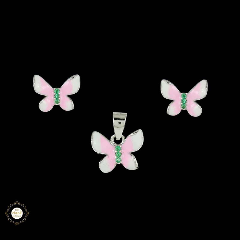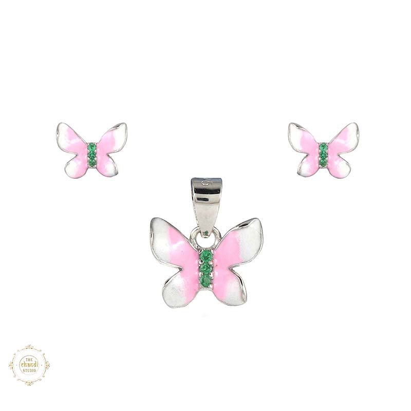 Sterling Silver Sparkling Silver Pink Flutter Pendant Set