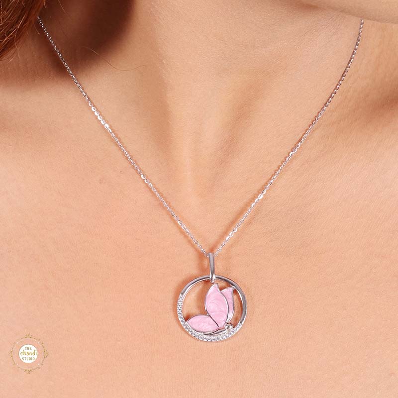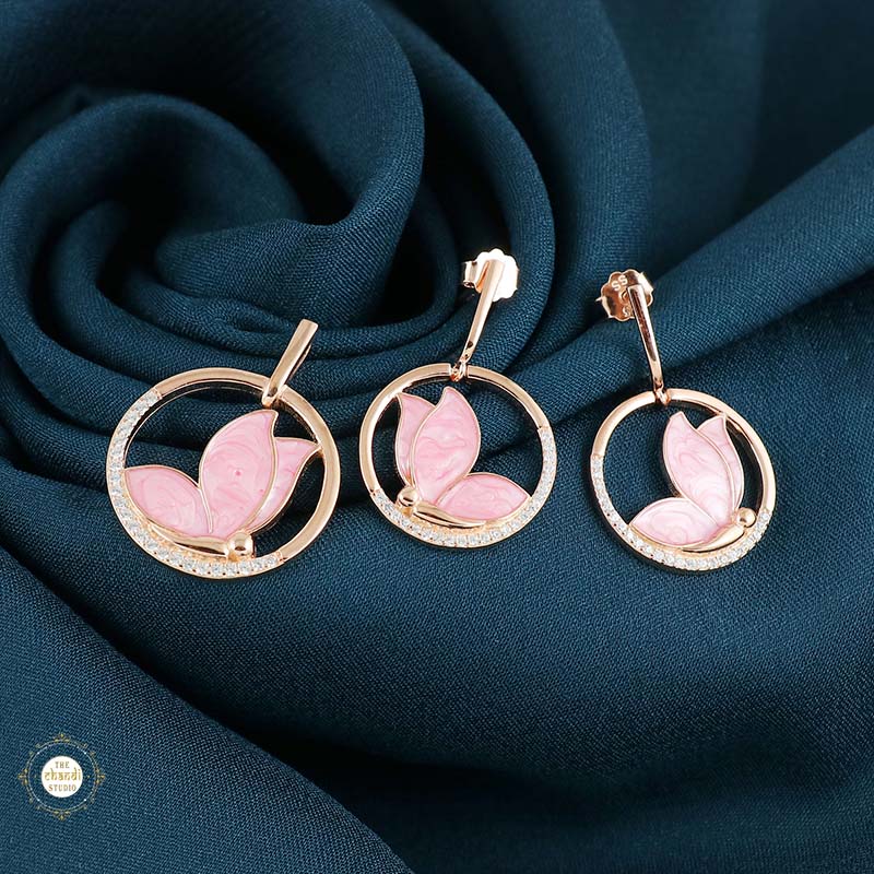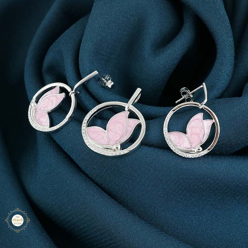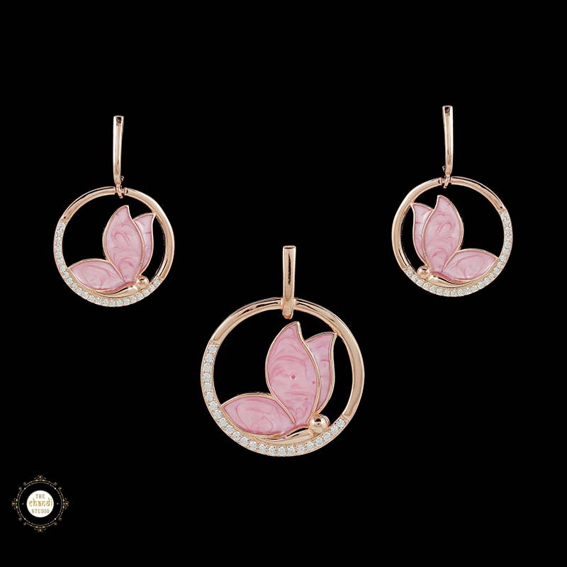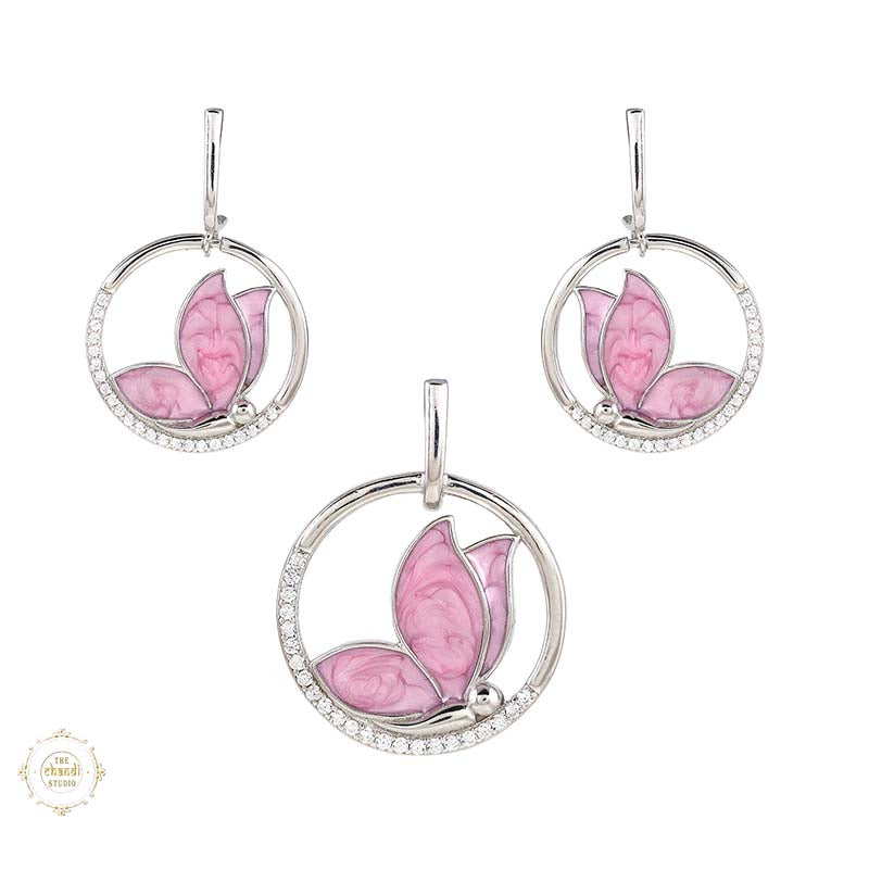 Sterling Silver Sparkling Silver Pink Wings Pendant Set