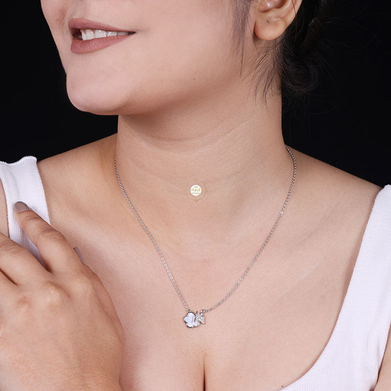 Introducing our dazzling Sparkling Silver Radiance Necklace, a beacon of elegance and charm. This exquisite necklace features a radiant design adorned with shimmering zircon stones that reflect light with captivating brilliance. * Nickle free Rhodium Polish for better finish