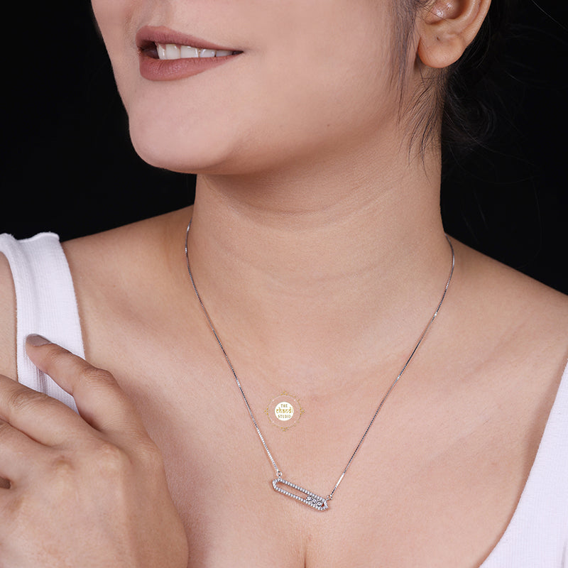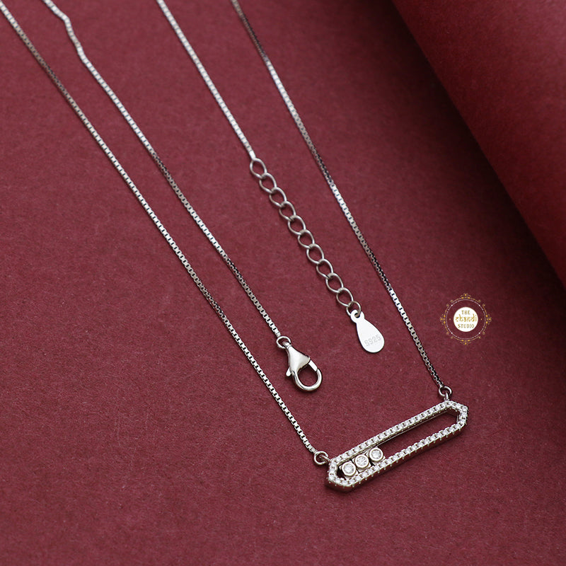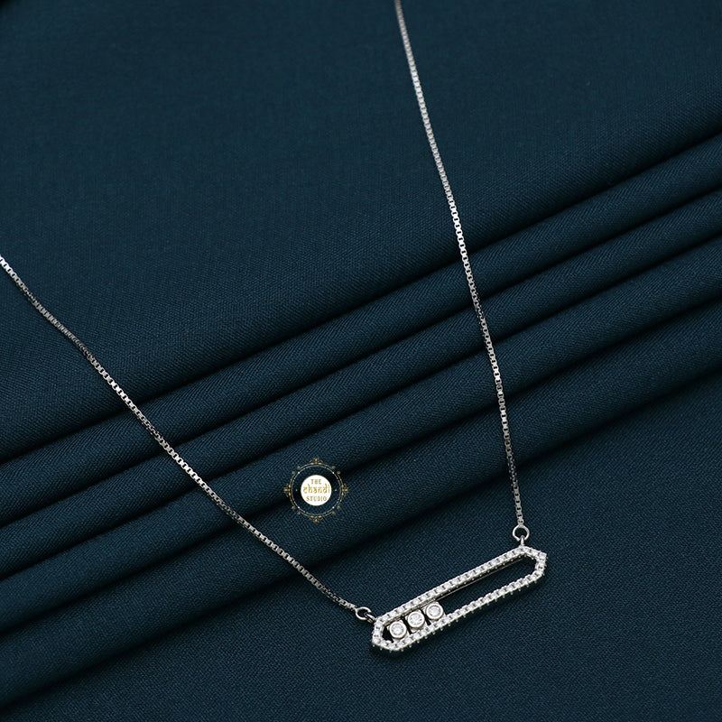 Introducing our Sparkling Silver Seesaw Necklace, a playful and elegant piece from our blingy silver jewellery collection. Adorned with shimmering zircon and featuring a seesaw design, this necklace adds a touch of whimsy to your style. * Nickle free Rhodium Polish for better finish