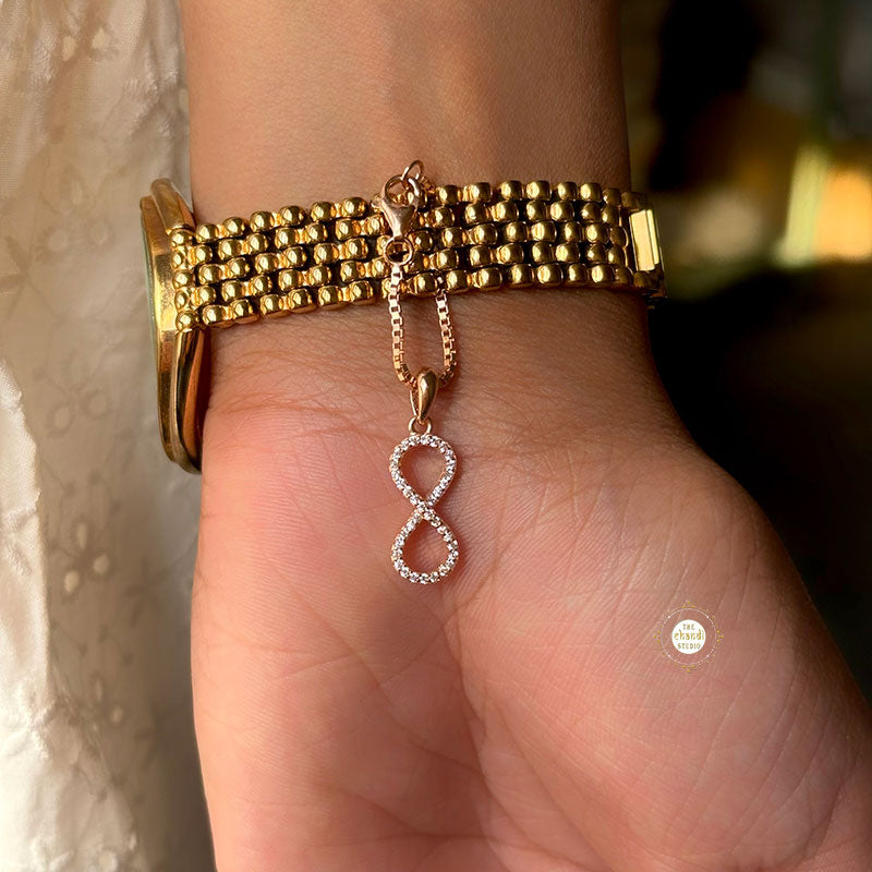 Elevate your style with the Sparkling Silver Infinity Charm ✨—a dazzling charm featuring delicate silver craftsmanship and shimmering stones, perfect for adding elegance to bracelets or pendants. A timeless, radiant accessory!