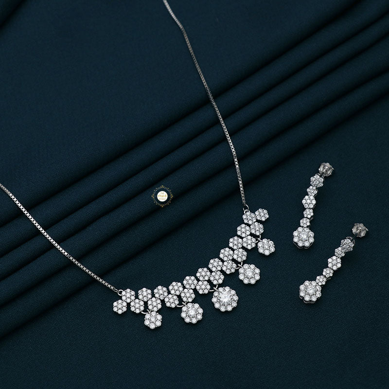 Whether worn as a statement piece for special occasions or to add a touch of sparkle to your everyday look, the Sparkling Silver Sparkle Serenade Necklace with Earrings is sure to make you shine bright and radiate confidence. Embrace the allure of sparkle and serenade with this stunning set that captures the essence of elegance and grace. * Nickle free Rhodium Polish for better finish