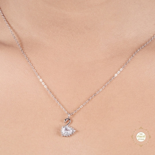 Embrace timeless beauty with the Sparkling Silver Swan Necklace. Crafted in sterling silver, this elegant piece features a graceful swan pendant, symbolizing purity and love.